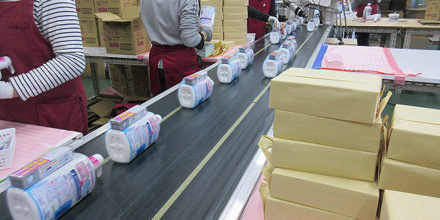 クリーンルーム・化粧品(化粧水)のセットアップ(シュリンク)、医薬部外品商品、食品(食玩)のアッセンブリー、パッケージ包装加工